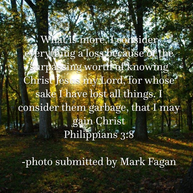 He considered everything—everything—yes, everything–loss compared to the value of knowing Christ. He said that he had suffered the loss of all things—all things—all things—and considered all those things filth (worthless—a waste), so that he might gain Christ.