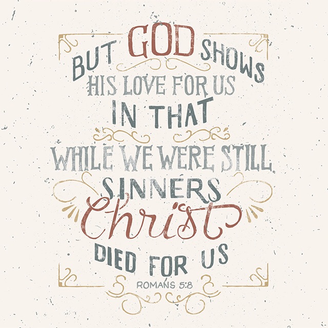 WHILE WE WERE YET SINNERS…… Those are strong words, aren’t they? These words hit me some time ago, but I’m have to remind myself and the ones He brings into my life, that His word tells me He died for me. Why? Is it because I’m good enough, righteousness enough, strong enough, and perfect enough? No! It says He died for me and loved me as a sinner! Not a perfect Christian. Not a perfect wife. Not a perfect mother. Not the righteous, not the wise, and not those who have it all together.